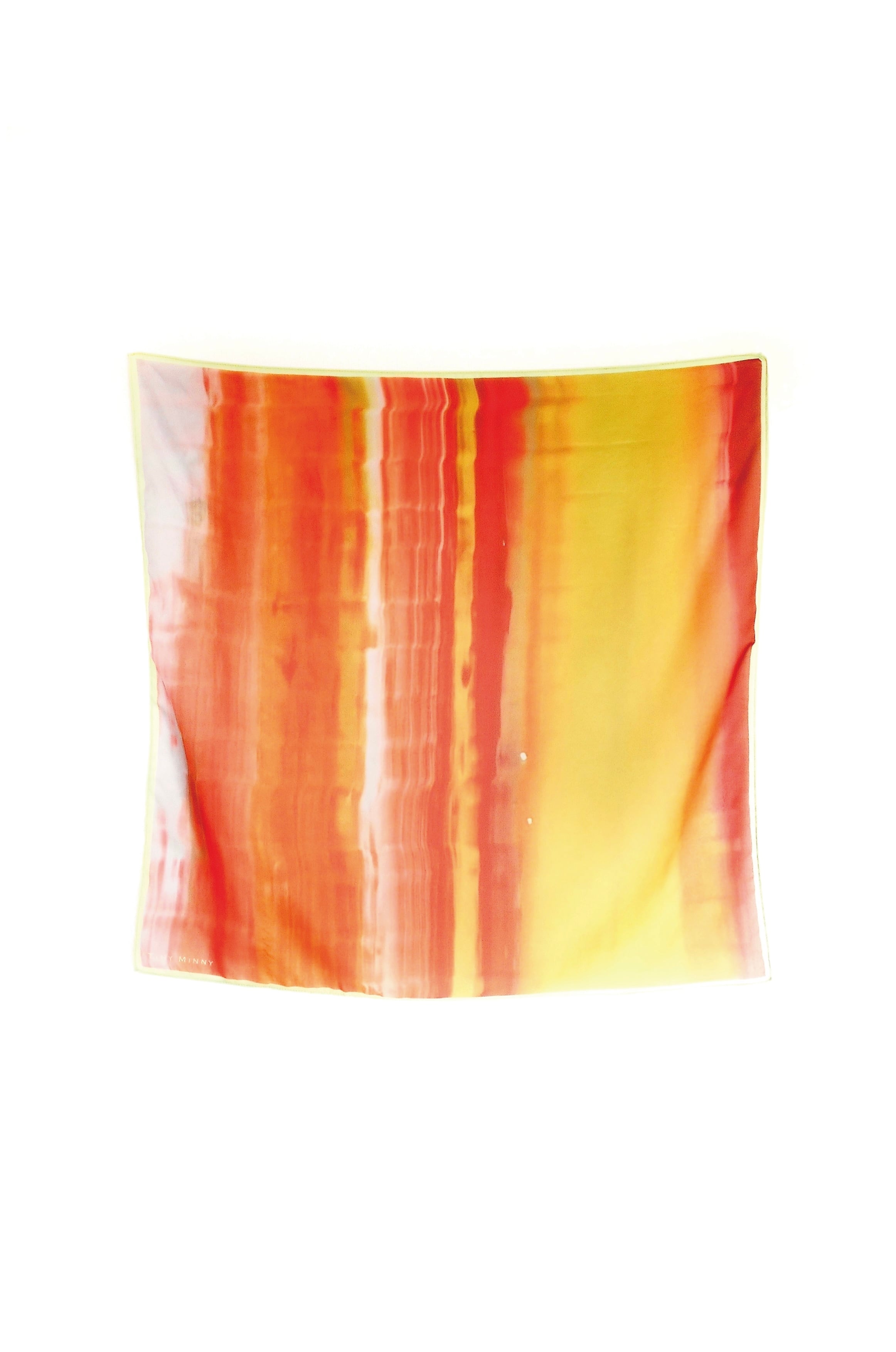この名前は、空に光を運ぶ“夜明けの女神”に由来しています。オレンジからイエローへと移ろう色彩は、空が少しずつ目覚めていく情景を映しだします。軽やかさの中に、そっと背中を押すような強さと、始まりの神秘を秘めた一枚です。