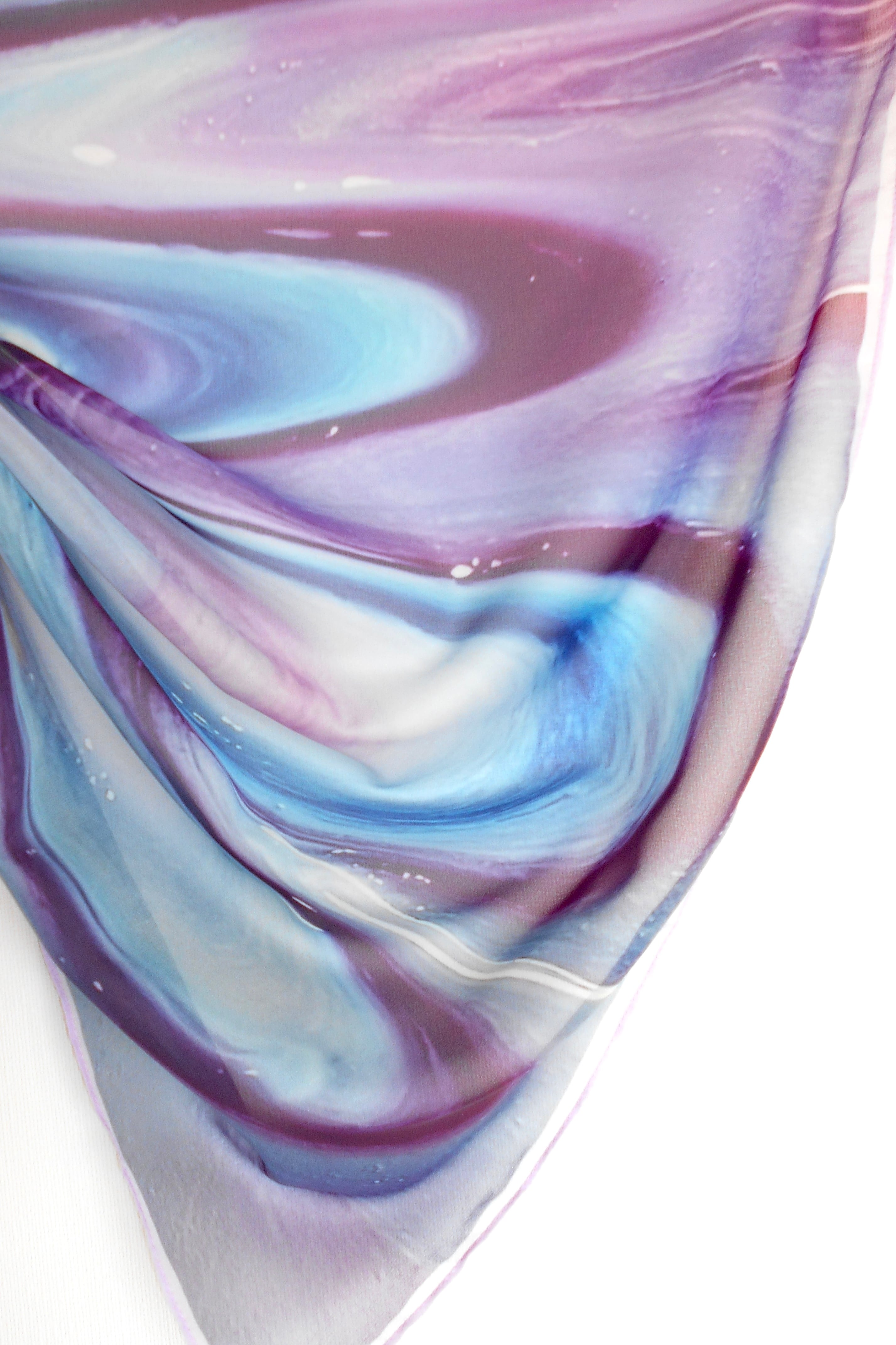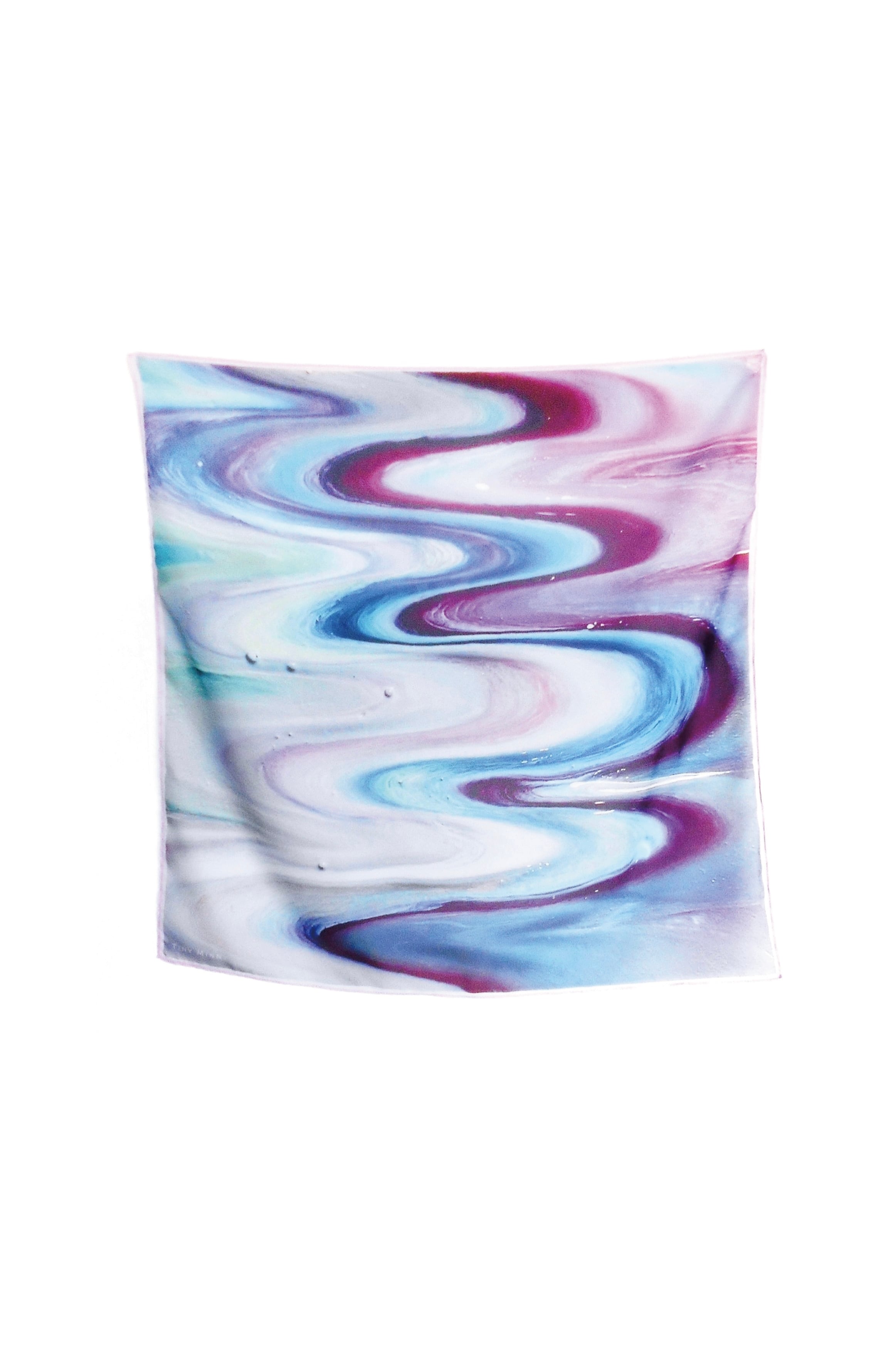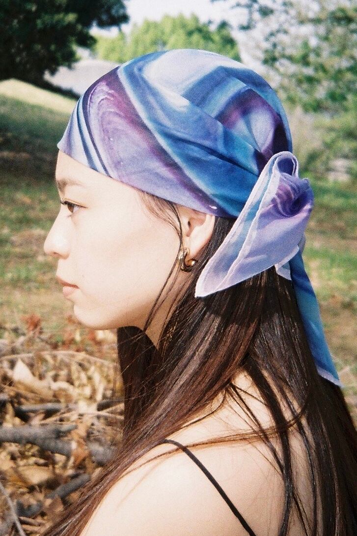 光の届かない水の奥深くで生まれる色の変化を、深い藍が紫へと移ろうグラデーションでスカーフに閉じ込めました。