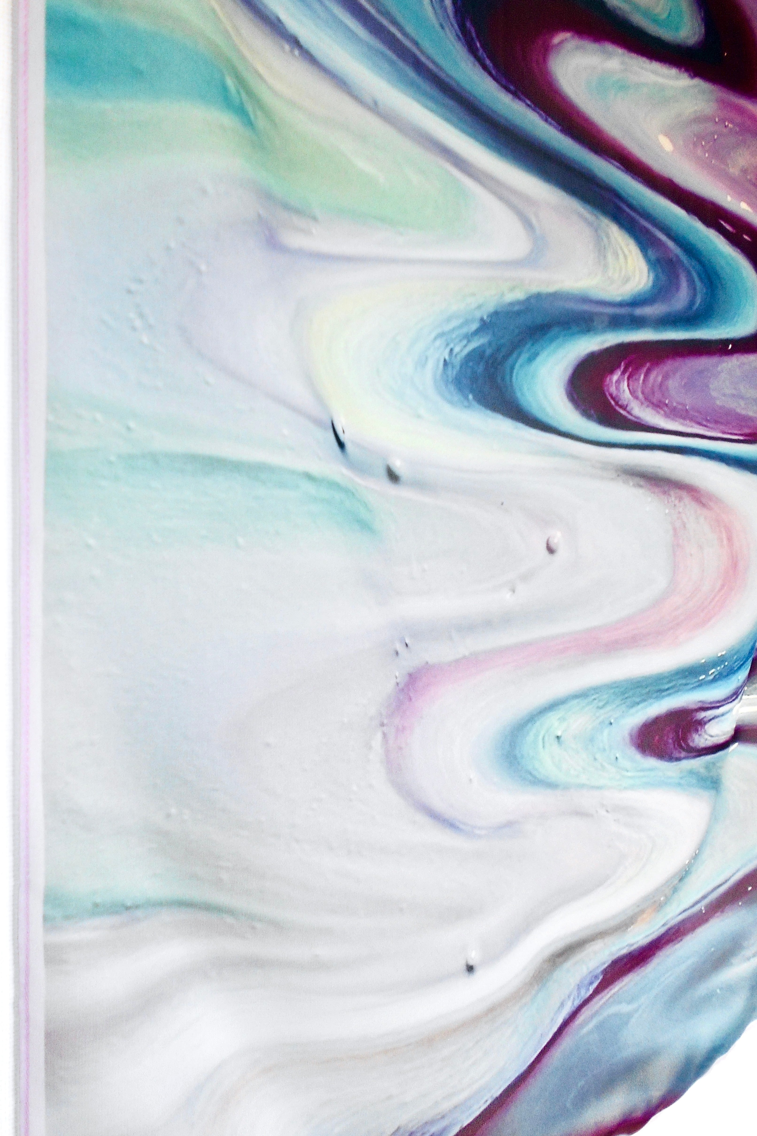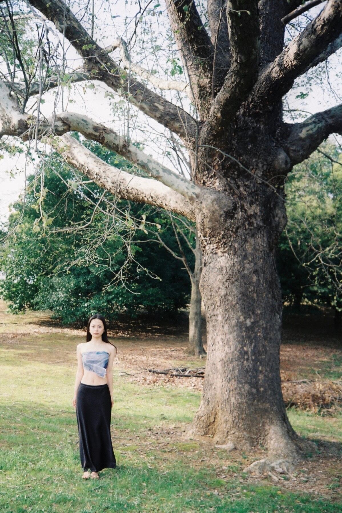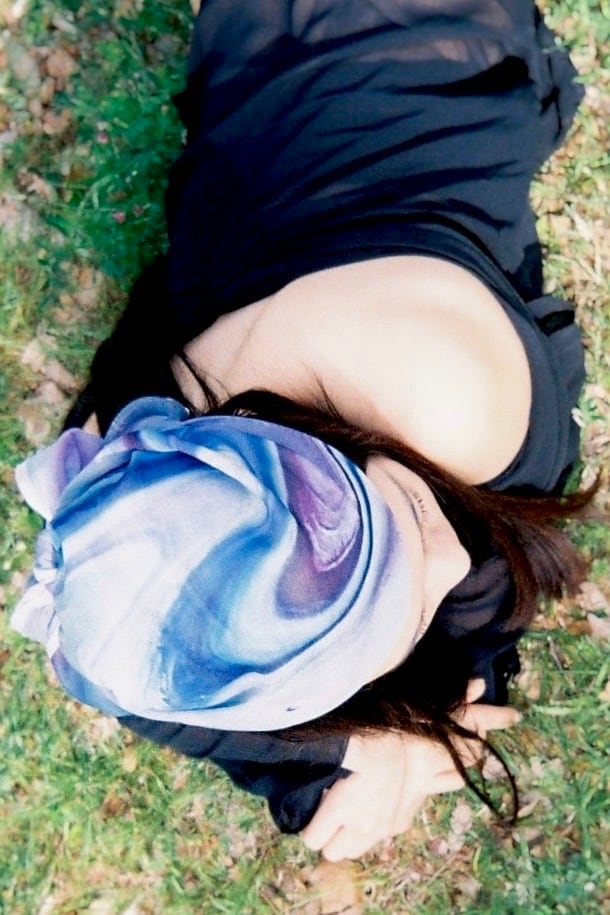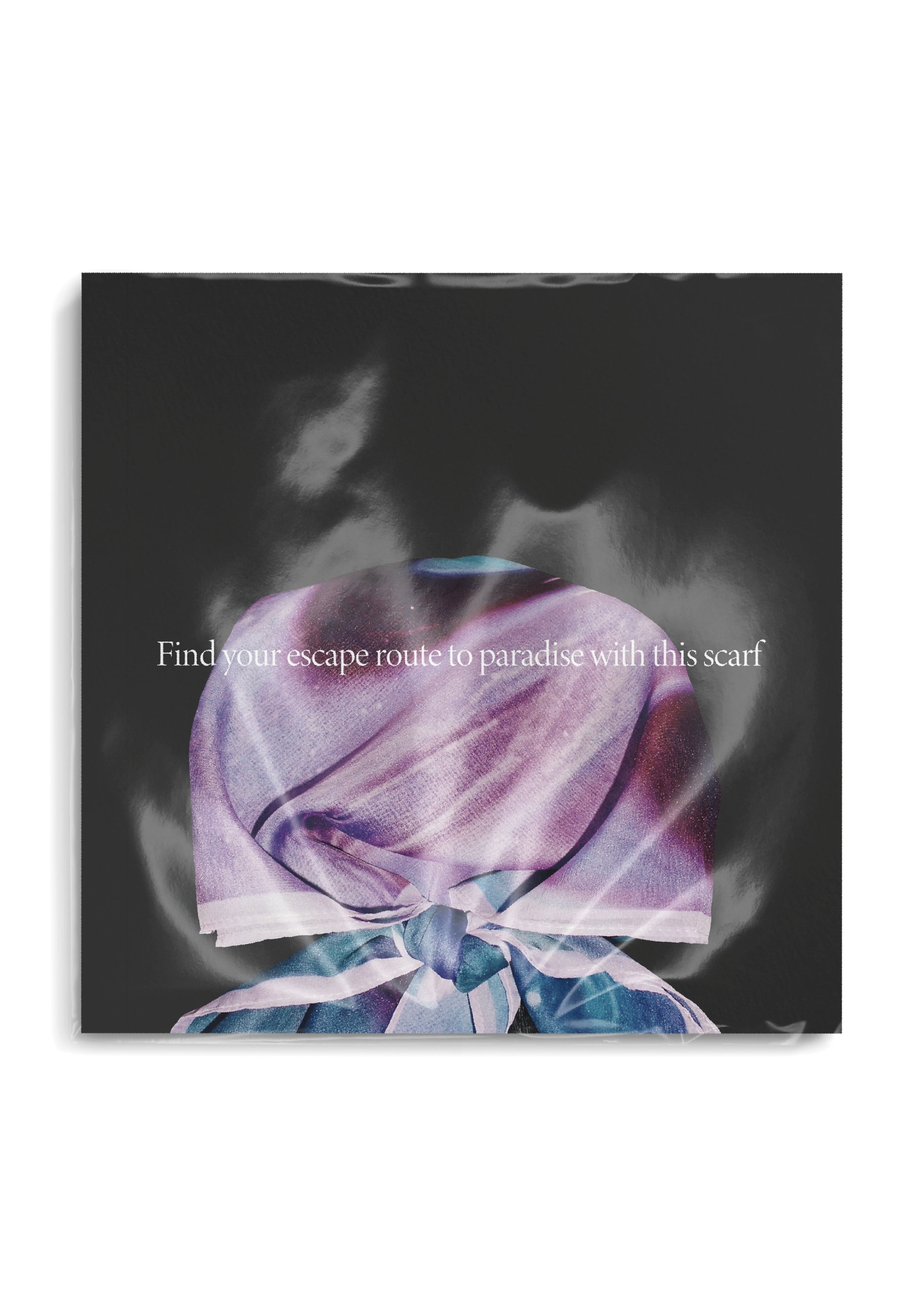 光の届かない水の奥深くで生まれる色の変化を、深い藍が紫へと移ろうグラデーションでスカーフに閉じ込めました。