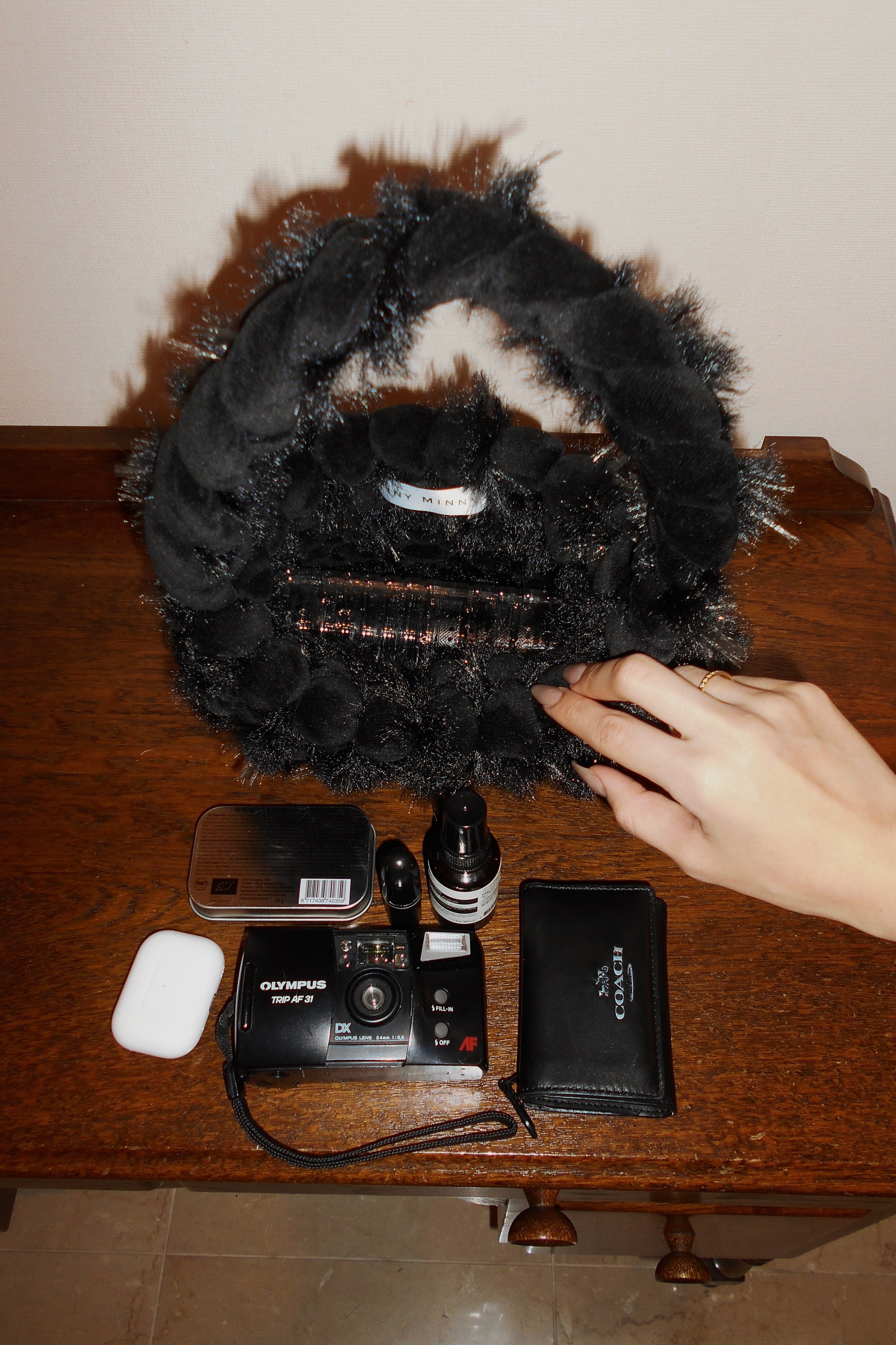 ※500mlのペットボトル、財布、フィルムカメラ、小物が入る大きさ