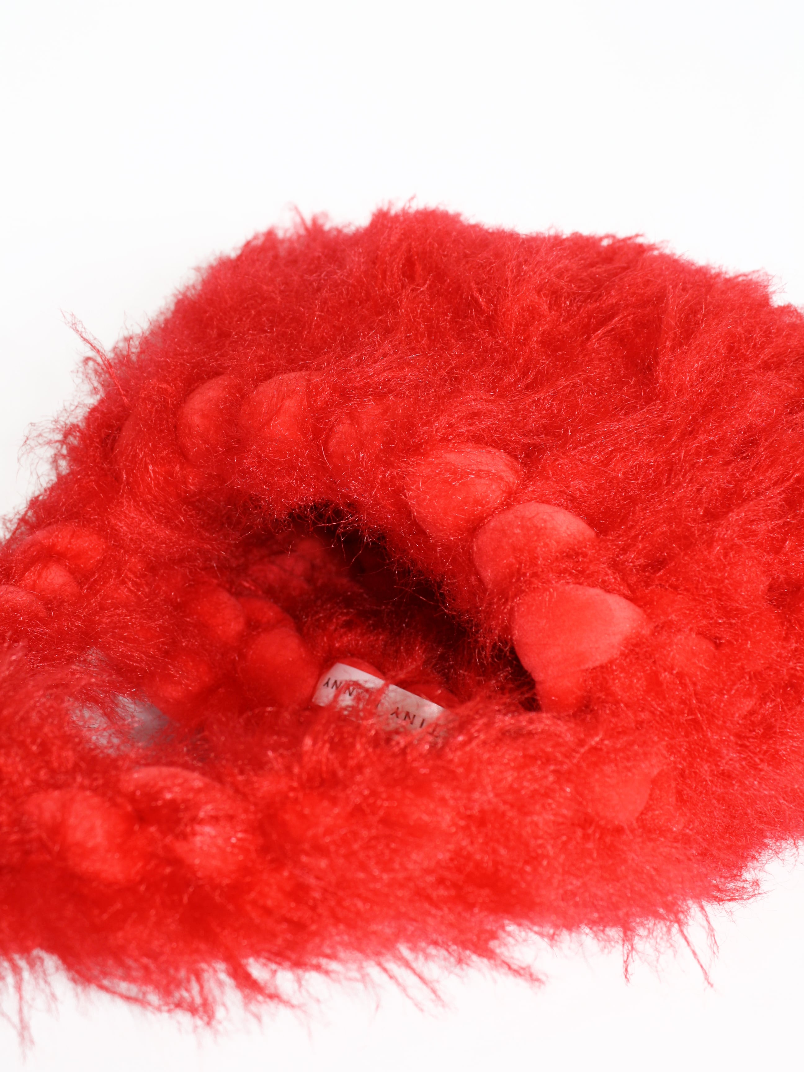 しっとりとしたベロアボディと6cmのファーヤーンが織りなす質感のコントラストが、唯一無二の立体感を生み出します。レーヨン混のヤーンがもたらす心地良い肌触りと軽やかな印象で、しっかりと形をキープしながらも存在感を漂わせます。